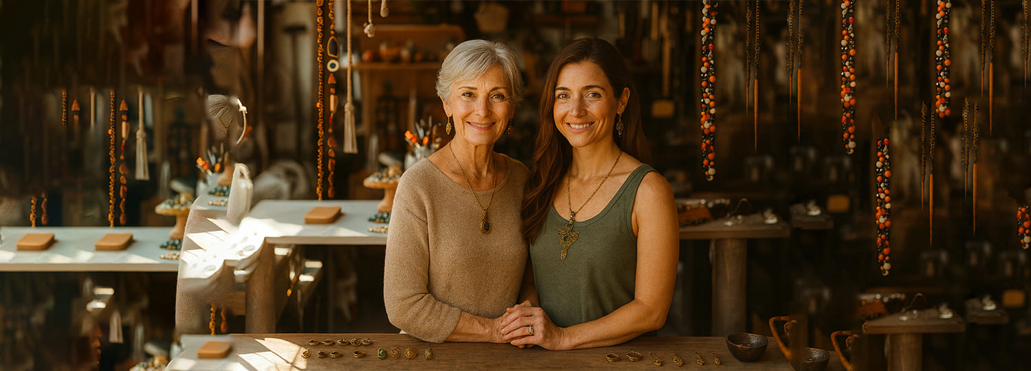 Pendant des années, en tant que mère et fille, nous avons conçu, fabriqué et partagé nos bijoux avec amour et dévouement — de nos toutes premières commandes en ligne aux journées ensoleillées passées sur les marchés locaux.